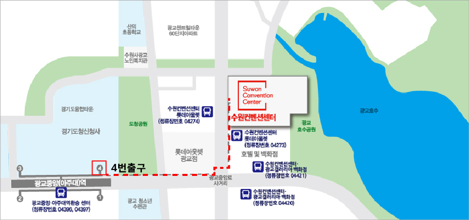 • - 지하철: 신분당선 광교중앙(아주대)역 4번 출구
